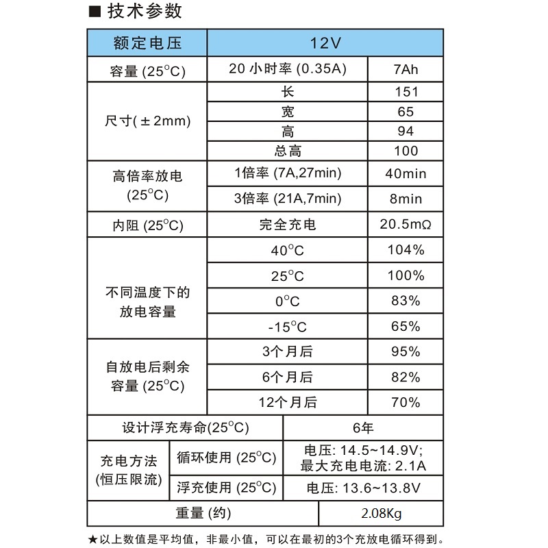 額定容量:7AH/20HR